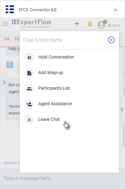 If the agent leaves a conversation while the customer is still present on any of the customer channels, the conversation remains active but the agent task is closed.