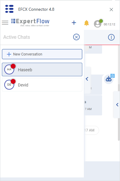 After logging in, an agent may change the Chat state to Ready or Not-Ready. On Ready state, he can be able to make inbound and outbound conversation.