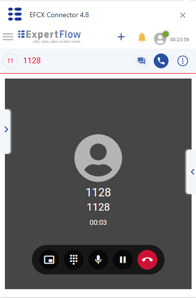 The agent can end the call using this toolbar by clicking on the End Call button. This will end the call leg between the agent and the customer.