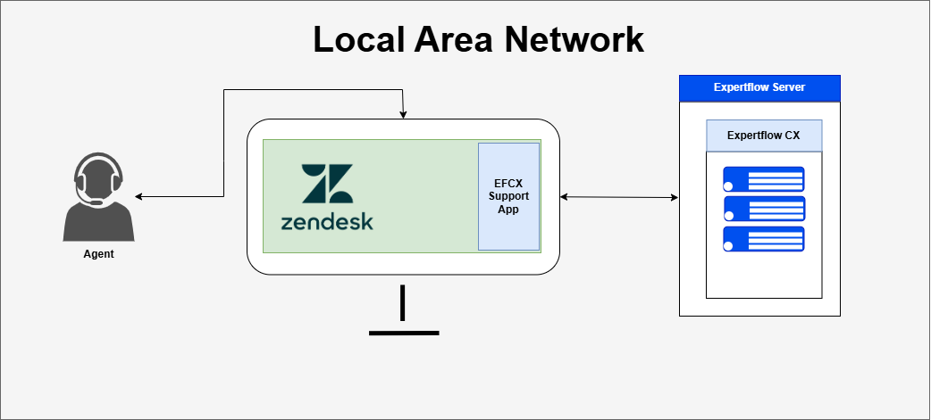 Following is the architecture diagram that illustrates how the EF connector is integrated into Zendesk.